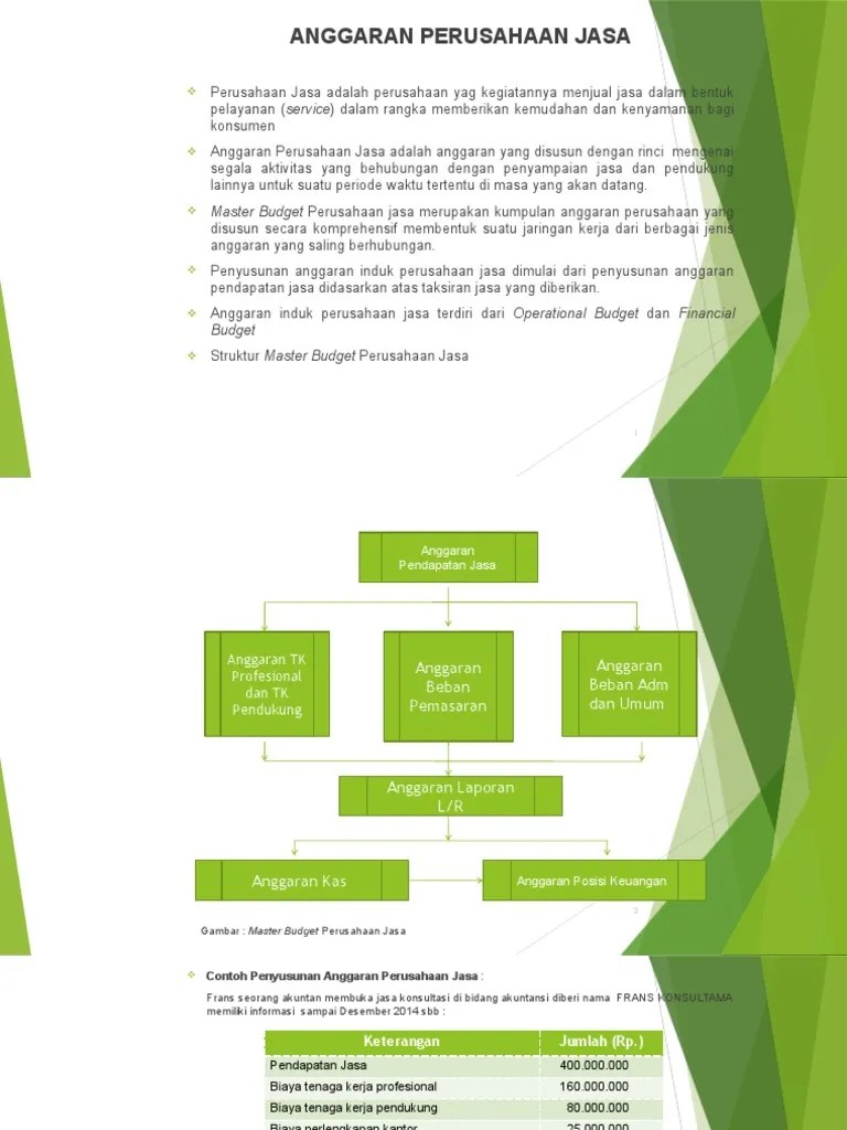 The management control environment & process Penyusunan anggaran bagi pada perusahaan jasa, dagang. Sebelumnya bahwa penyusunan anggaran induk terdiri. Penyusunan anggaran induk perusahaan jasa dimulai dari penyusunan anggaran pendapatan jasa didasarkan atas taksiran jasa yang diberikan. Harga perolehan jasa dari pihak luar perusahaan untuk keperluan. Data dan informasi penyusunan anggaran penjualan. 4 didalam perusahaan dagang (trading), anggaran induk yang dibuat lebih ringkas/. Bab ini akan membahas proses penyusunan anggaran induk untuk perusahaan jasa. Contoh laporan keuangan perusahaan jasa perusahaan jasa perusahaan jasa . Seperti layaknya penyusunan anggaran perusahaan menufaktur, anggaran untuk . Anggaran perusahaan jasa perbankan …. Penyusunan anggaran induk perusahaan jasa dimulai dari penyusunan anggaran pendapatan jasa didasarkan atas taksiran jasa yang diberikan. Oleh karena itu, perhatian yang memadai harus diberikan pada penyusunan anggaran penjualan dengan memperkirakan permintaan secara akurat.